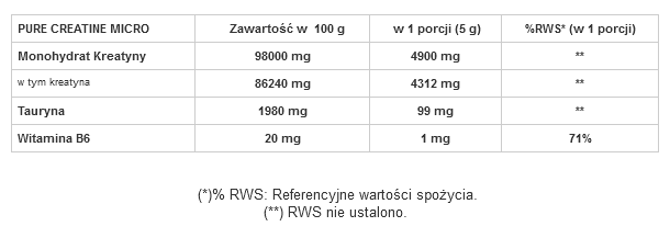 PURE CREATINE MICRO | in 100 g | in 1 serving (5 g) | %NRV* (per serving) |