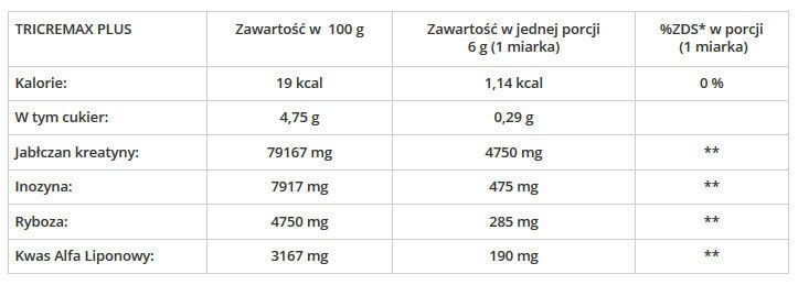 GenLab Tricremax Plus is a dietary supplement. The product is targeted at strength athletes and adults in sport both amateur and professional. GenLab Tricremax Plus contains Tri-Creatine Malate, Inosine, Ribose and Alpha-Lipoic Acid.
