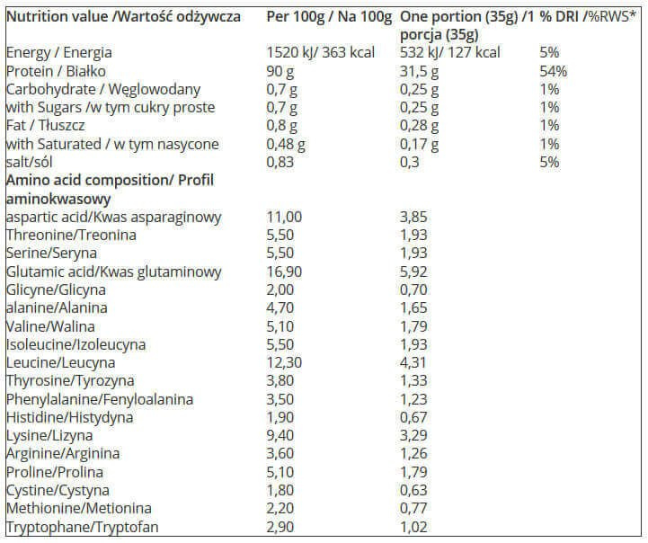 7Nutrition Natural Whey Isolate 90 is the highest percentage of protein per 100 g of product and excellent amino acid profile.