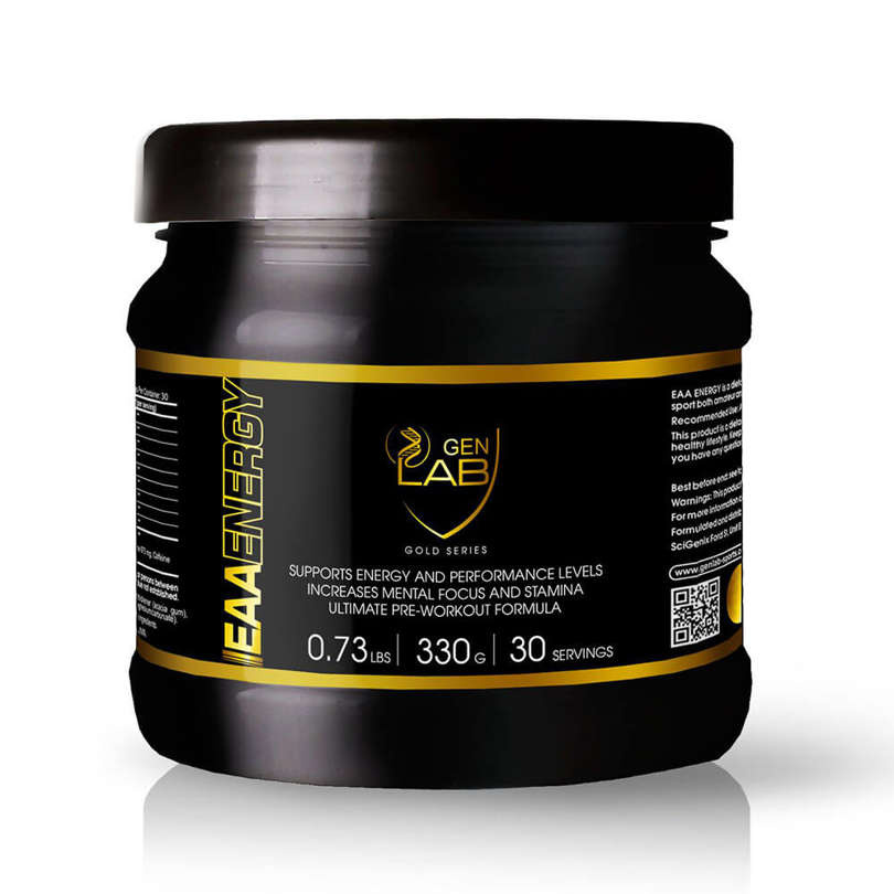 - GenLab EAA ENERGY contains L-Leucine, L-Valine, L-Lysine HCl, L-Phenylalanine, L-Threonine, L-Isoleucine, L-Histidine, L-Methionine, L-Tryptophan and Energy & Focus Shot.