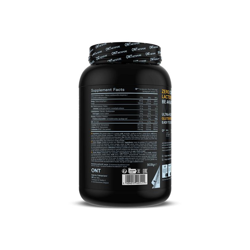 QNT Metapure Zero Carb contains exclusively whey isolate. This type of whey contains protein in its purest form, of a quality far superior to traditional whey. Thanks to an advanced filtration process, Metapure offers an isolated protein almost without trace of lactose, fats, or carbohydrates. This purity translates into rapid and efficient absorption, allowing your body to immediately benefit from the essential amino acids for muscle repair and growth.