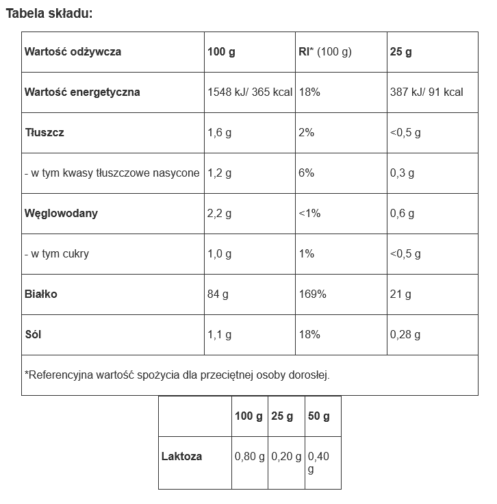 - No unnecessary ingredients: The formula free of fats, carbohydrates and lactose makes the product ideal for people on a reducing diet and those who want to avoid unwanted additives. This is a guarantee of purity and effectiveness.