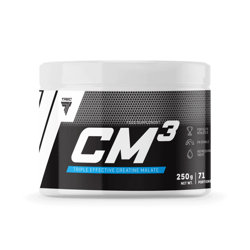 CM3 to preparat zawierający jabłczan trikreatyny. Jest to stabilna, odporna na kwaśne środowisko przewodu pokarmowego i bardzo dobrze rozpuszczalna forma kreatyny. CM3 zawiera kreatynę, która zwiększa wydolność fizyczną w przypadku następujących po sobie krótkich, bardzo intensywnych ćwiczeń fizycznych. Korzystny efekt występuje w przypadku spożywania 3 g kreatyny dziennie.