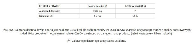 CITRUGEN POWDER Ilość w porcji (4 g) %ZDS* w porcji (4 g)