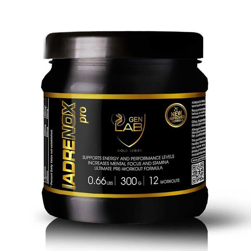 GenLab ADRENOX PRO został wzbogacony o AAKG, jabłczan cytruliny, beta alaninę oraz chlorowodorek argininy, które zwiększają produkcję tlenku azotu w organizmie, przyczyniając się do poprawy wydolności, a także poprawy ukrwienia mięśni (tzw. pompy mięśniowej). Zawarta w składzie karnityna, tauryna. tyrozyna i kofeina działają pobudzająco, wspomagają redukcję tkanki tłuszczowej oraz przyśpieszają metabolizm.