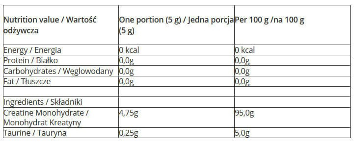 | Creatine Monohydrate / Monohydrat Kreatyny | 4,75g | 95,0g |