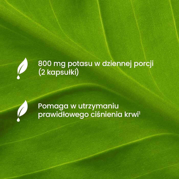 - Prawidłowe ciśnienie krwi. Potas aktywuje wiele reakcji enzymatycznych w naszym organizmie. Pomaga w utrzymaniu prawidłowego ciśnienia krwi, zarówno skurczowego jak i rozkurczowego1,3.
