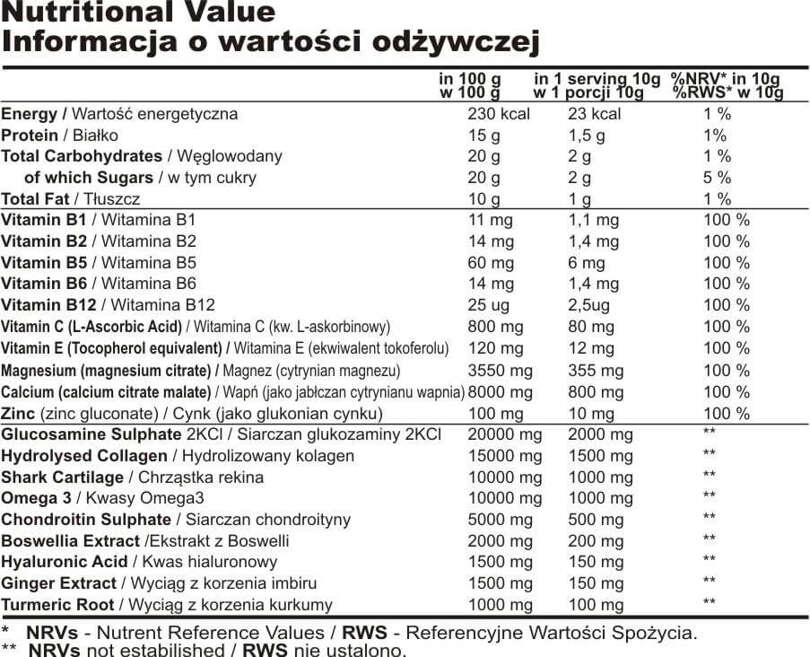 - Suplement diety, który zawiera ultra-skoncentrowany matrix składników wspomagających regeneracje przeciążonego układu kostno-stawowego.