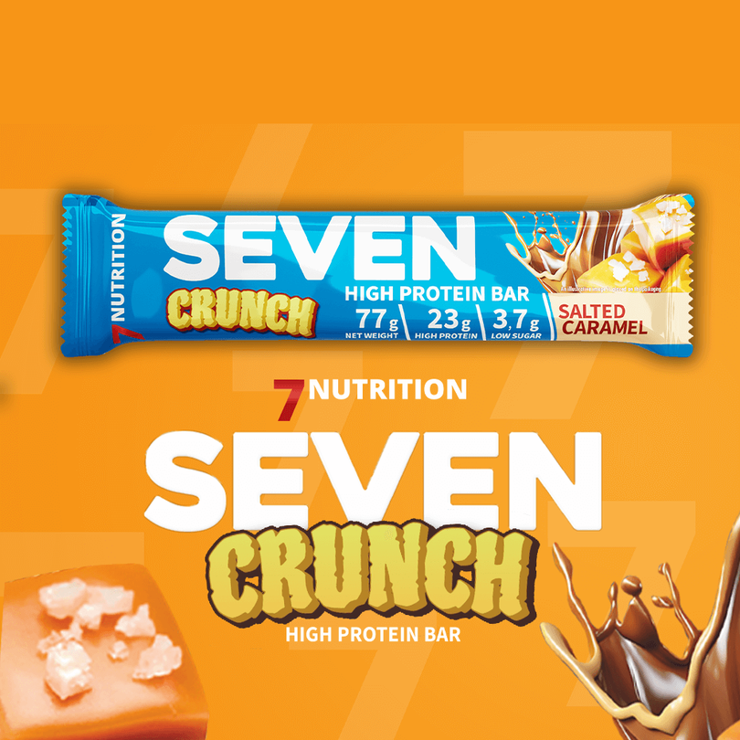 Szukasz wysokobiałkowej przekąski, która naprawdę syci i smakuje jak cheat meal? 7Nutrition Seven Protein Bar o smaku słonego karmelu to baton białkowy klasy premium, który dostarcza aż 23 g pełnowartościowego białka, a jednocześnie zachwyca swoją konsystencją i intensywnym smakiem - bez kompromisów. Stworzony z myślą o osobach aktywnych, dbających o sylwetkę i tych, którzy nie chcą rezygnować z przyjemności nawet na diecie.